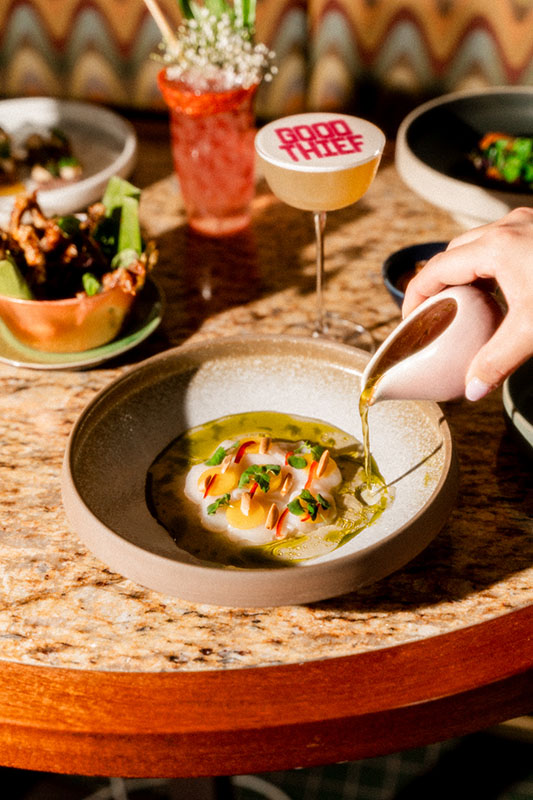 It may be inspired by the Nguyens’ memories, but Good Thief is different from Anh and Chi’s traditional Vietnamese fare. “Here, we’re mixing everything. We’re borrowing from around the world,” Amelie says, adding that, like the cocktails, “The food, it’s a journey.”