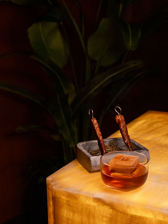 At Meo, Bykov is all about upending expectations, especially when it comes to sweet and savoury flavours. Think: a nitro- charged Espresso Carrotini made with Beefeater blood orange gin, citrus-peel-infused cold brew and, yes, carrots, in the form of both a reduction and dust; or the Cosmo Fizz made with shōchū, beet shrub and prosecco.