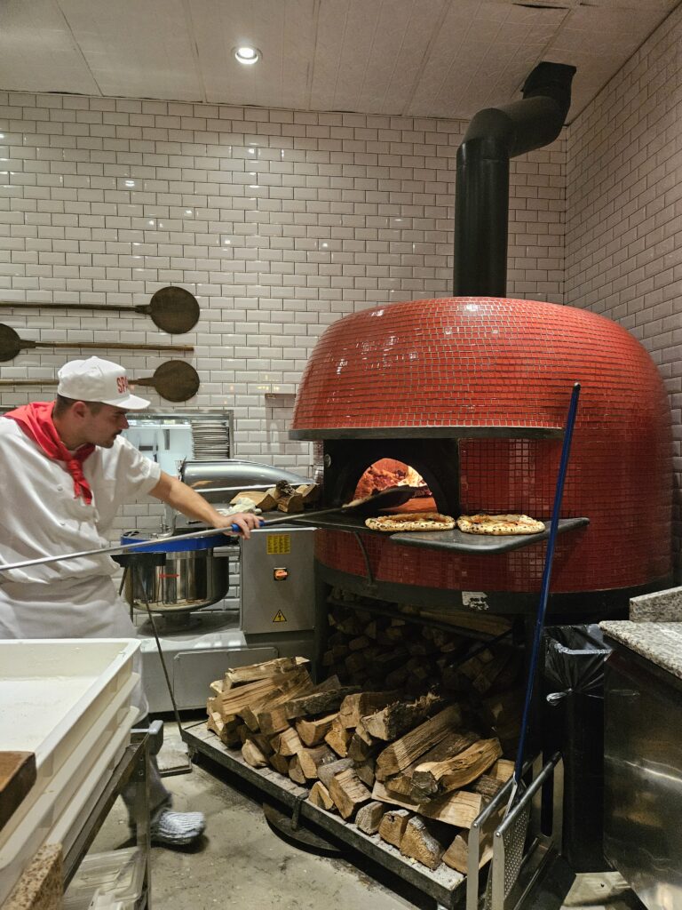 “We never went a day without talking about food,” Pero says. After they both graduated, Di Giovanni as a dentist and Pero as a financial adviser, the chats continued as their pursuit for the perfect pizza, which led them to travelling frequently to Italy. “My wife is from Rome,” Pero says. “And I was going to Rome all the time. The pizza is great, it has its own thing. And I was like, Dav, I love the pizza here in Rome and we would have our debates and then one day we did end up going together to Napoli.” Di Giovanni says, “Our families met there, and he was like, ‘wow’ that’s incredible. So that was kind of like the germination of the seed getting watered.”