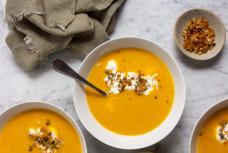 Squash bisque with walnut Parmesan crumble